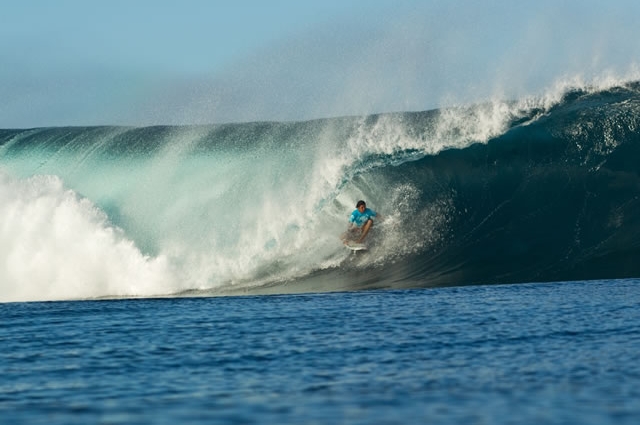 長くてクリーンな出口を持ったバレルを見事にメイクしたウォルシュのベスト・ウェイブは9.3をスコアし、今日のトップ3に入った。彼は、その借りモノのサーフボードで出した結果を喜んでいた。「先週、僕は全ての板を折ってしまったんだ」とウォルシュが言った。「グンター・ローンの良い板を持っていたんだけど、それが折れたら板が無くなってしまうと思っていた。そうしたら,有り難い事にトコロから板を借りることが出来たんだよ。