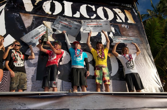 「それは驚異的だった」とグッドウィンは、生涯ベストの成績で終えたイベントのセミファイナルについて言った。「今日の事はずっと忘れる事は出来ないよ」 2009年12月にパイプ・マスターズでファイナルをケリーと演じたワードはこの結果に満足な様子だった。「今日の波は最高だったね。パーフェクトだった」とワードが言った。