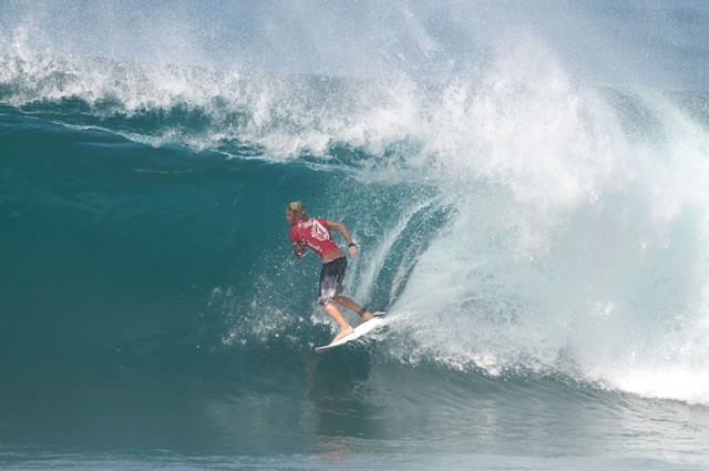 8歳の時に,このバンザイ・パイプラインでサーフィンを始めたジョン・ジョン・フローレンスは、すぐにサーフィン界のスポットライトを浴びるようになった。その10年後,多くの期待を背負って18歳になった彼は今日,ホーム・ブレイクで行われた120,000ドルのVolcomパイプ・プロで優勝することによって、それまでの彼のエネルギーが全く無駄に消費されていなかった事を証明した。