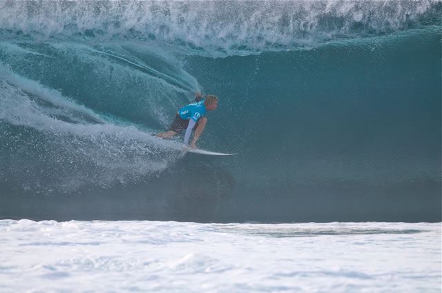 与えられたチャンスを無駄にする事なく,フローレンスは、30分のヒートのオープニング10分で、信じられないようなチューブ・ライディングを次々とメイク。バックドアの7.67、8.43に続き、パイプラインの9.93で勝負を決定的なものにした。彼はその3本以外の波には乗らなかった。そしてトップ2ウェイブ・トータル18.36のまま、優勝賞金16,000ドルと1,000のASPレイティング・ポイントを獲得。さらに重要なことは、12月8~20日にここで開催される世界最高峰のサーファー達が戦う、パイプ・マスターズのワイルドカードを手に入れた。