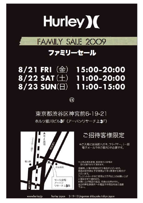 そんなハーレーが、東京・神宮前でファン待望のファミリーセールを行う。取り扱い商品はメンズ、ガールズ、アクセサリー、シューズ、アイウェアなど。もちろん全商品が特別価格にて提供だ。