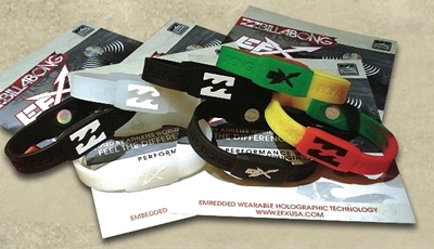 オーストラリア発祥のインターナショナル・サーフカンパニーとして世界中から熱い注目を集めている「BILLABONG」は、EFXスポーツ・リストバンドとのコラボレーションアイテムの販売を開始した。EFXはホログラフィック技術を取り入れた、人体の細胞レベルにまで高く融合する周波数によって、生体電気エネルギー(気)の流れを整え、安定させると考えられている。そしてバランスの統制をはじめ持久力や柔軟性などを向上させて、身体が本来持っている力を最大限引き出す。気力、スタミナ、耐久力、柔軟性などサーフィンに不可欠なあらゆる能力を高めたいサーファーにおススメ。