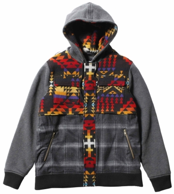 そんなハーレーが,最高品質のウール製品を提供するファッションブランド「Pendleton(ペンドルトン)」とコラボレーション。「Pendleton(ペンドルトン)」はネイティブアメリカンが使用していた毛布の柄をベースにウール100%で製品造りを行う、約140年以上も続いている老舗のブランド。そんな老舗ブランドをハーレーならではのサーフへ落とし込み。人気のチーフジョセフ柄を用いたモッズジャケットをはじめ、フード付ジャケット、ボードシャツ、デニムなど全て数量限定で魅力溢れるラインに仕上がっている。